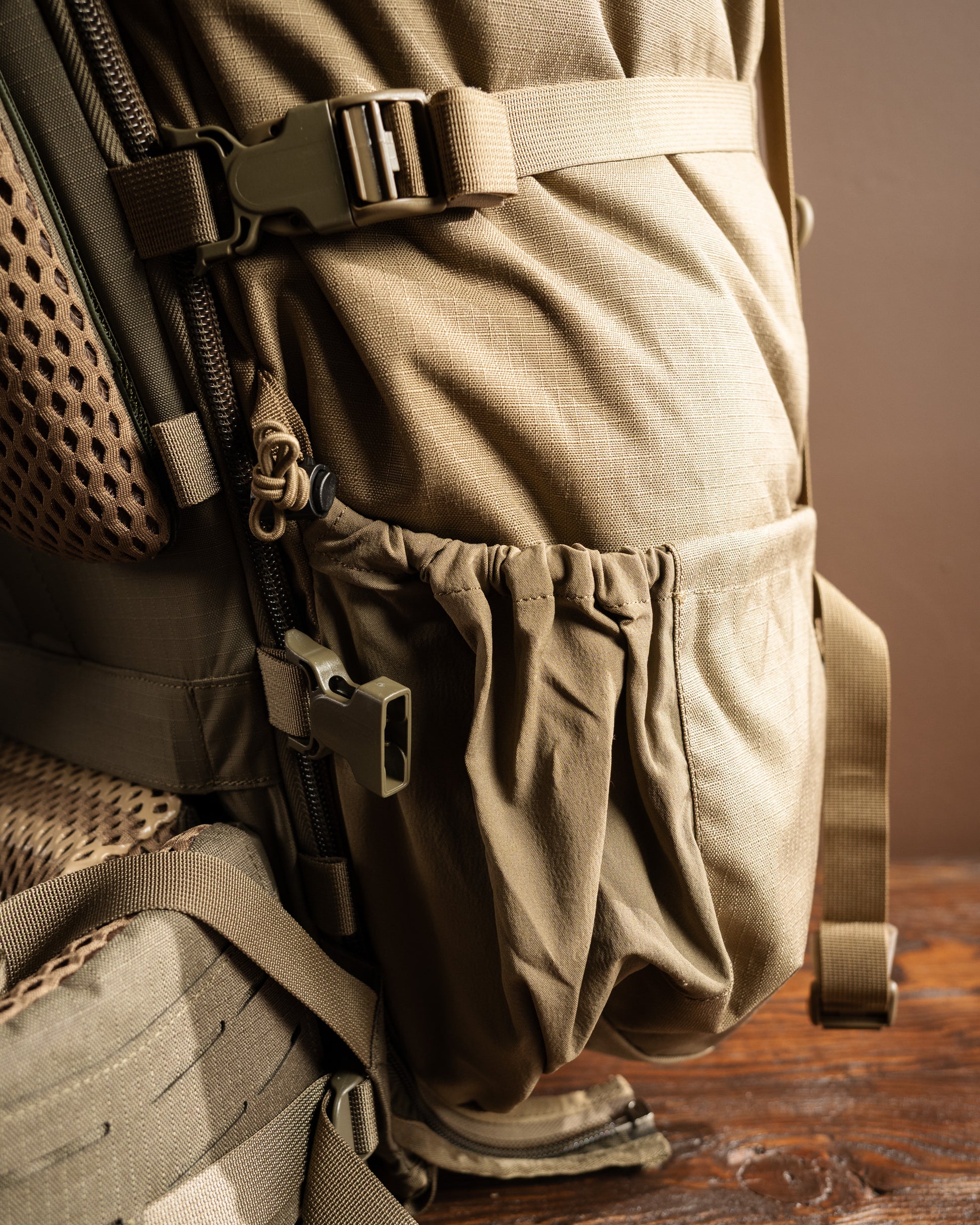 The Brooks 7000 was designed to pair perfectly with the Modframe™ or Mainframe™ for excellent stability and comfort under heavy loads. (Modframe or Mainframe not included) When the time comes to pack out quarters, detach the bag, secure your meat to the frame, and reattach, keeping weight tight to your back and over your center of gravity.