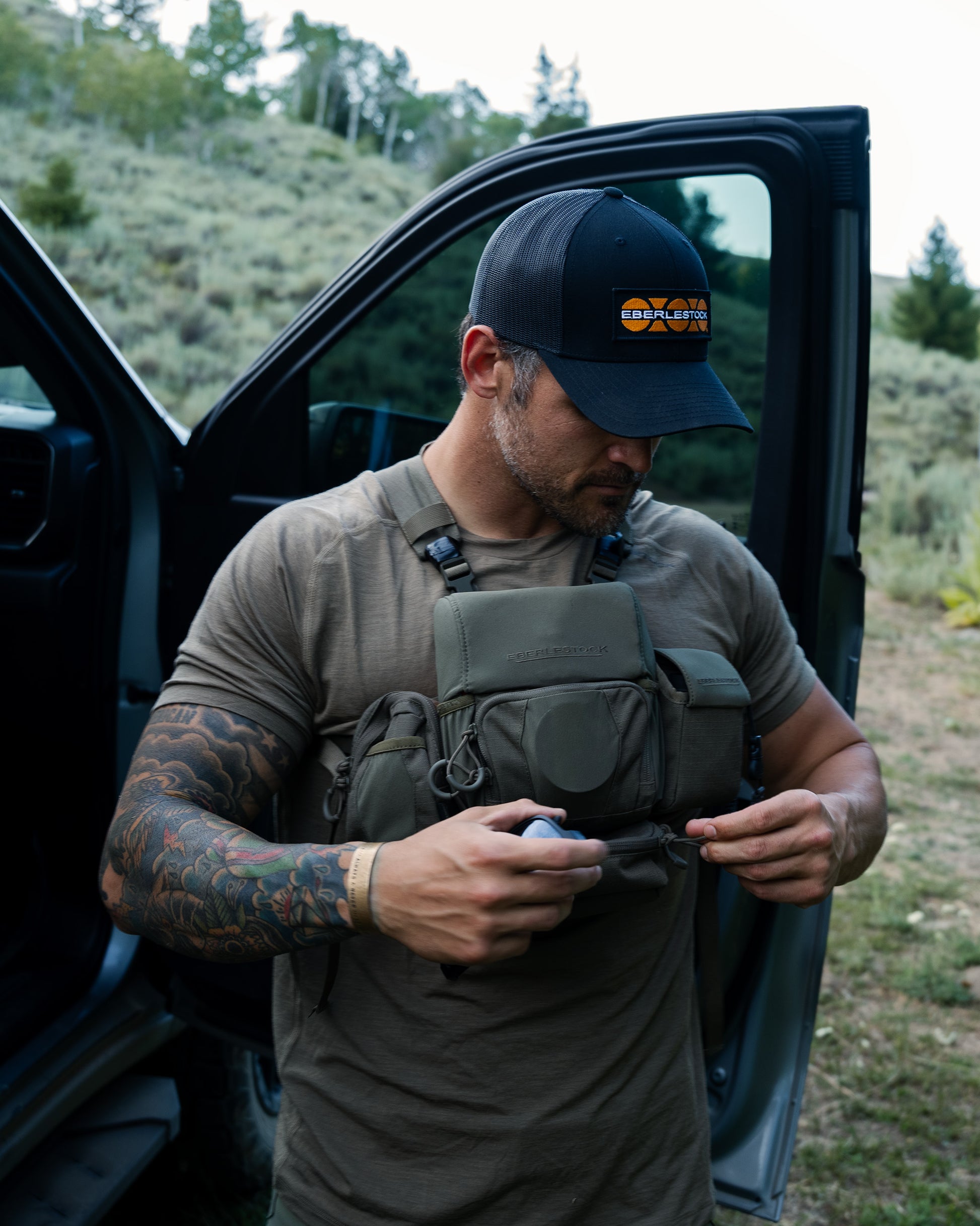 Rep Eberlestock in style with our Brand Hat. This high crown, 6-panel trucker cap comes complete with an Eberlestock embroidered patch on the front and a snapback closure on the back.